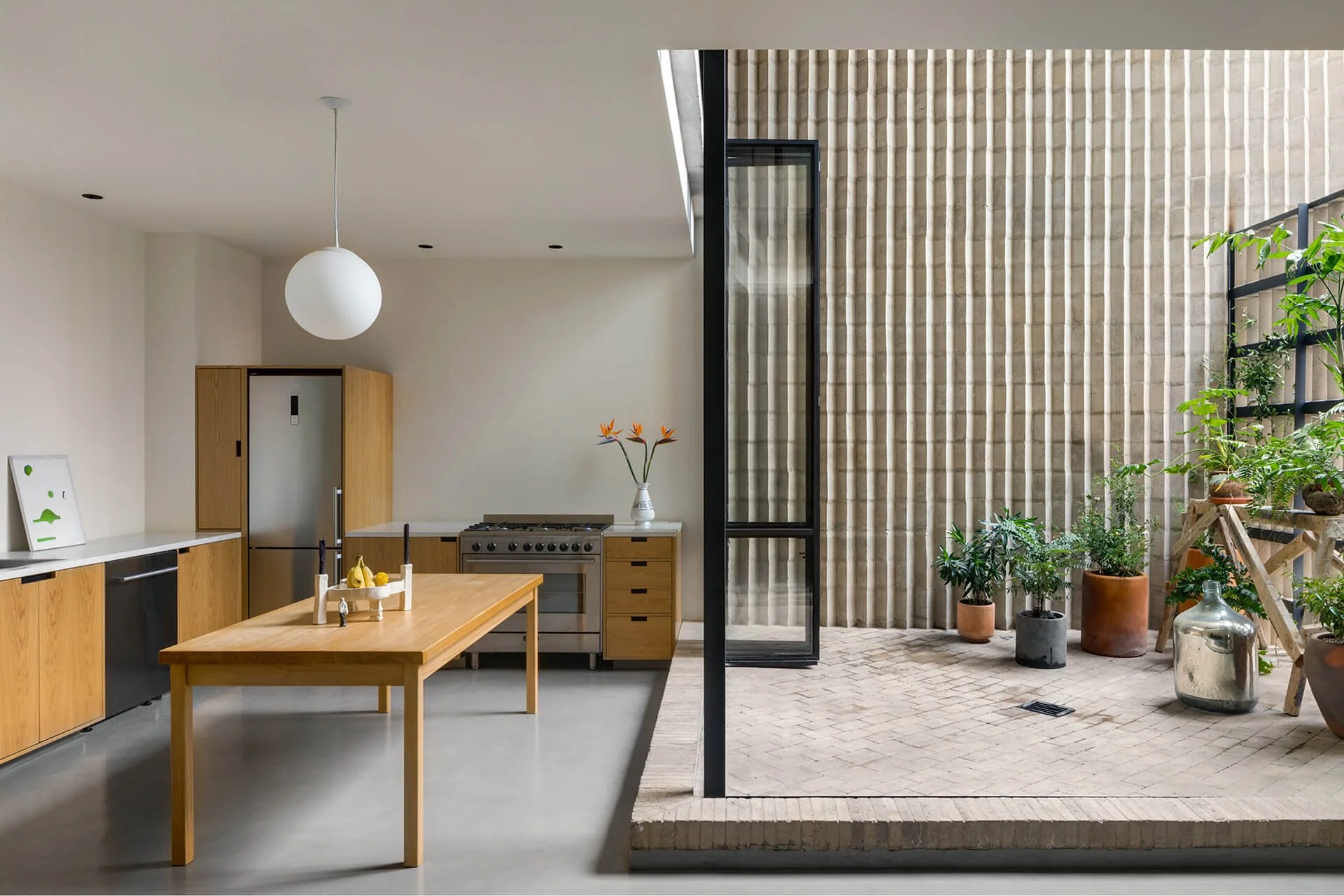A quiet, minimalist live/work space inside a Frida Escobedo–designed townhome.